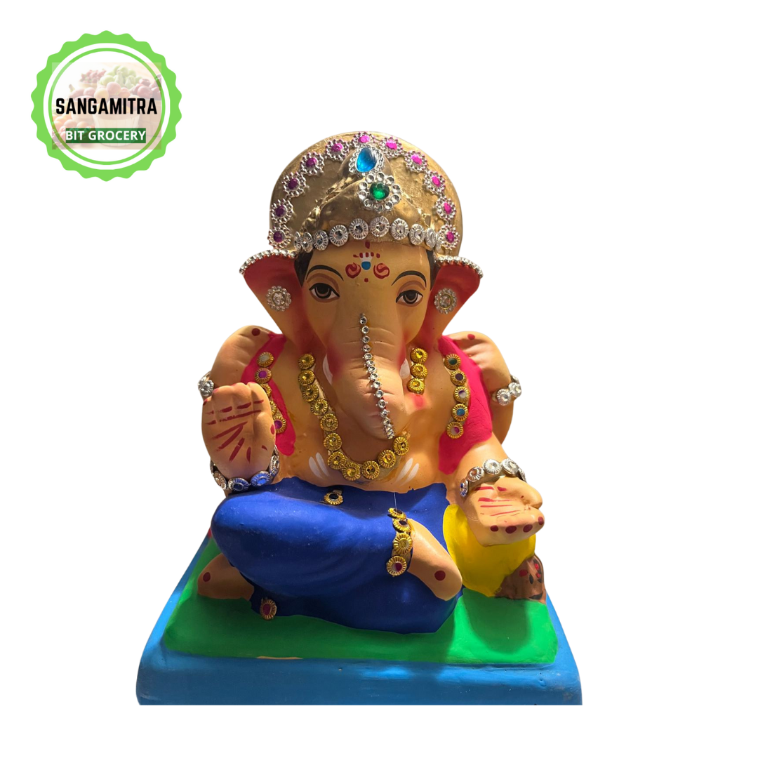 Ganesh Idols are 100% dissolvable in water (Eco-friendly). Natural colors are used to paint the idols. These idols are hand made & imported from Pune Maharashtra. These are specially made available for our customers for Ganesh Chaturthi 2025 festival.