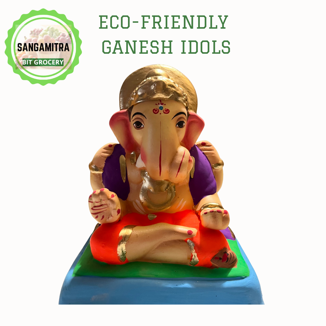 Ganesh Idols are 100% dissolvable in water (Eco-friendly). Natural colors are used to paint the idols. These idols are hand made & imported from Pune Maharashtra. These are specially made available for our customers for Ganesh Chaturthi 2025 festival.